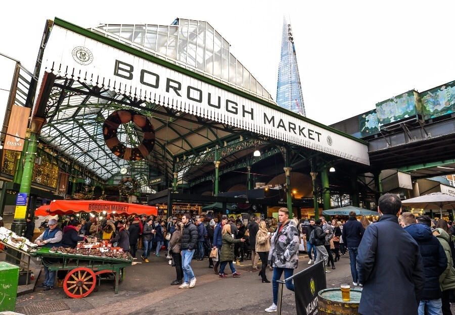 Цілорічний продуктовий ринок у грудні набуває святкового вигляду. Подовжуючи години роботи до вечора, простір прикрашають вінками, мішурою та казковими вогнями, а на прилавках продають звичні смаколики, а також святкові доповнення — глінтвейн, різдвяні пироги та подарунки. Обов’язково завітайте до сироварні Borough Cheese Company за ідеальною різдвяною сирною дошкою або до пекарні Olivier’s Bakery за ремісничим хлібом.